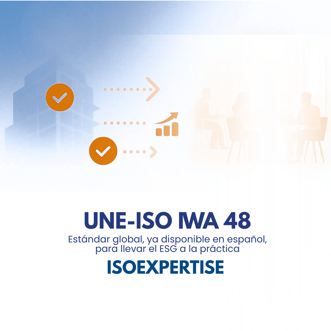 Se incorpora al catálogo nacional normativo como UNE-ISO IWA 48 Implementación de principios ambientales, sociales y de gobernanza (ESG). El documento está disponible para su descarga completando el formulario disponible.